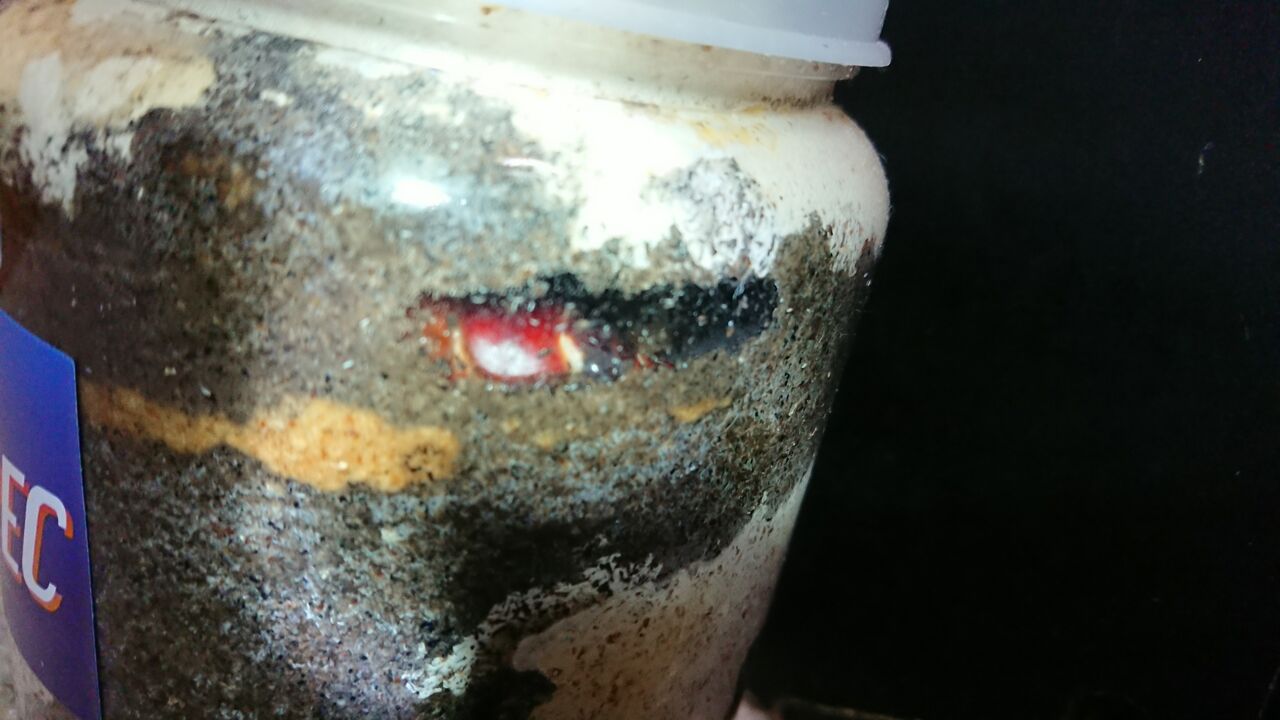 テルシテスやマルガリータの様子を見ているときにふと1番奥にあるヴォクティのボトルを覗いたらひっくり返ってもがいてるオス成虫の姿が!
