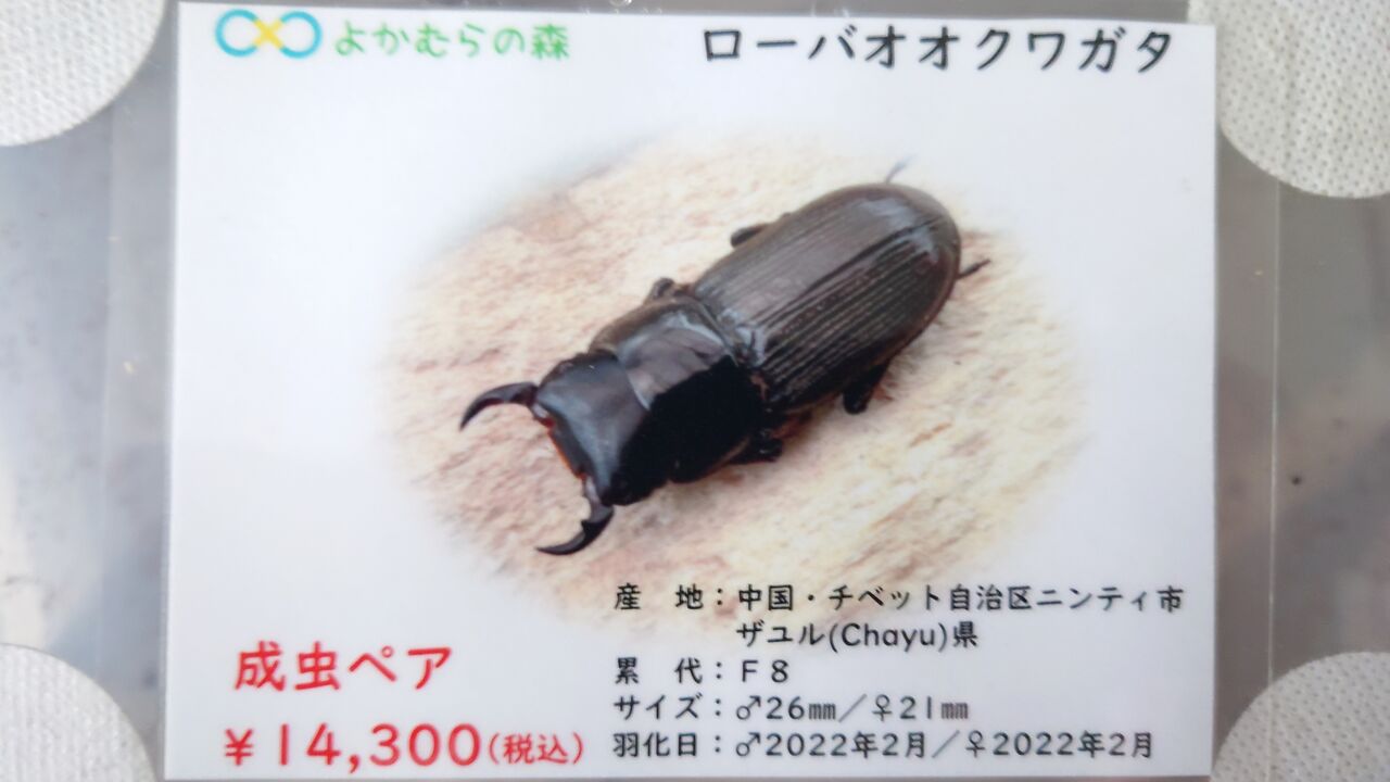 羽化:♂2022年3月 ♀2022年2月