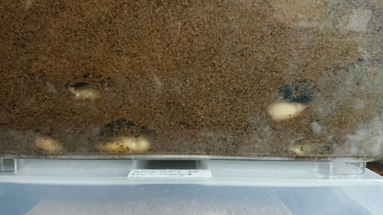 側面底面共に幼虫が見えました