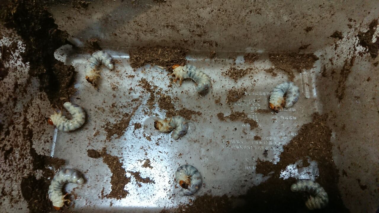 ひっくり返すと3齢幼虫がゴロゴロと出てきました