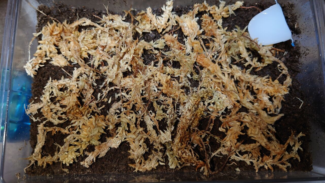 コバシャ小に謎の微粒子マットを固詰めして水苔を敷いた色虫御用達の平凡セットです