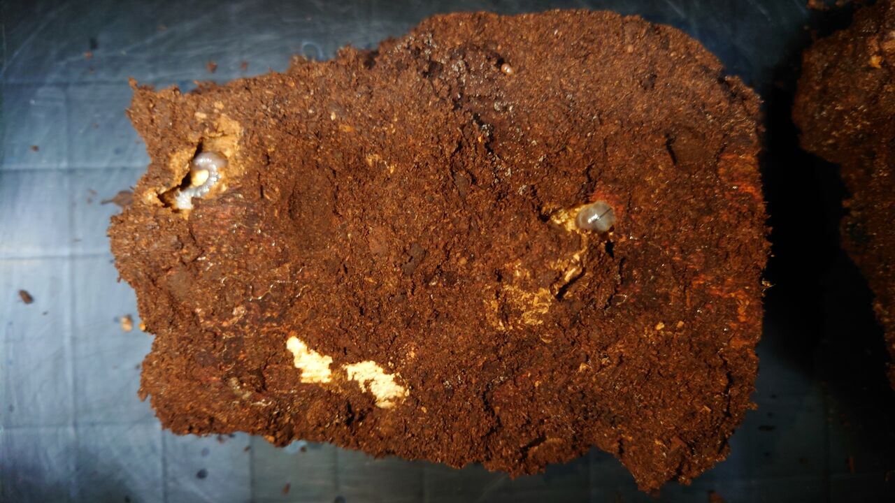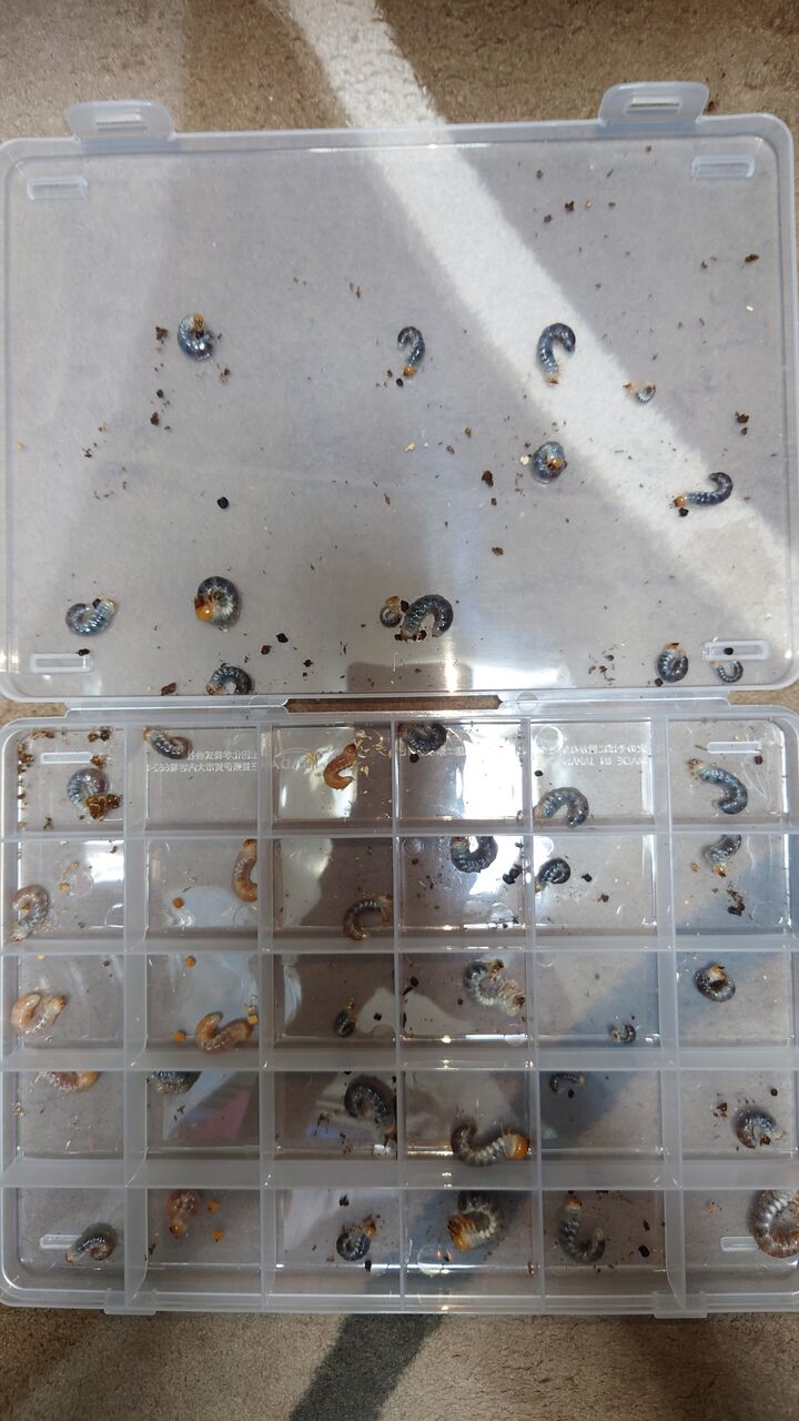 あまり外側から幼虫が見えていなかったので多少心配でしたがいることは間違いないので安心の割り出しです