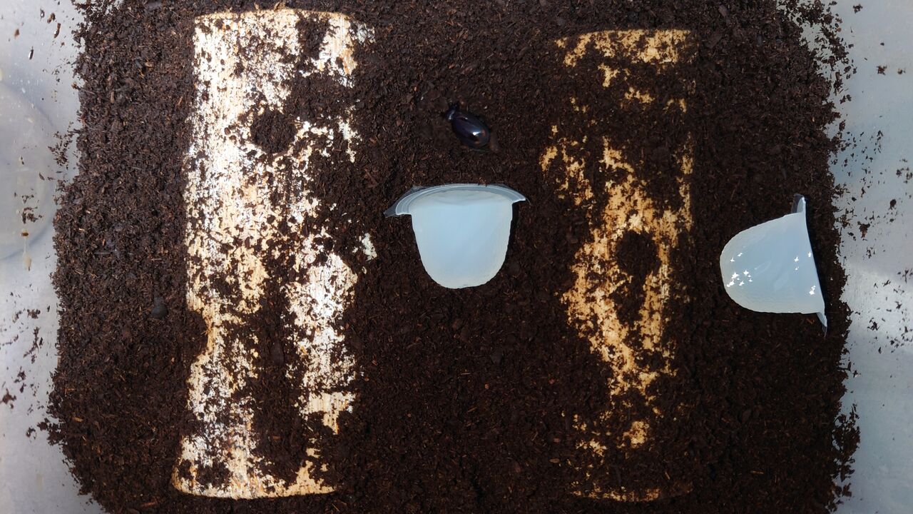 2齢のメスは用意していた200ccプリンカップにMDプロEXプレミアムを詰めたものに投入